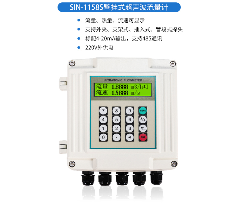SIN-1158R外夾式或者管段式超聲波流量儀表是以“速度差法”為原理,測量圓管內液體流量的儀表。