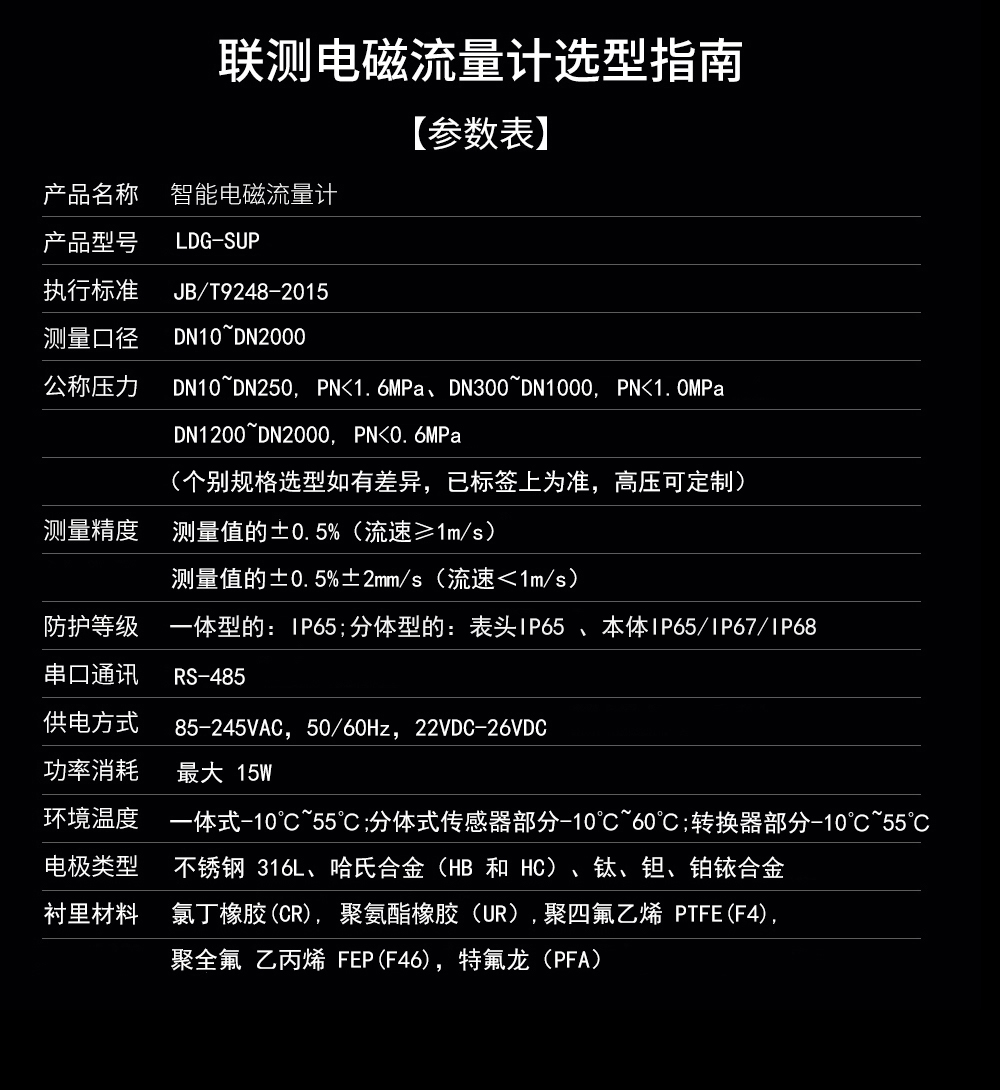 LDG-SINF系列智能電磁流量計適用于化工助劑、海綿城市、給水排水、水利灌溉、水處理、污水處理(環保污水控制、化工污水、電鍍污水)、造紙漿液(紙漿)、泥漿、醫藥原料、食品等工農業