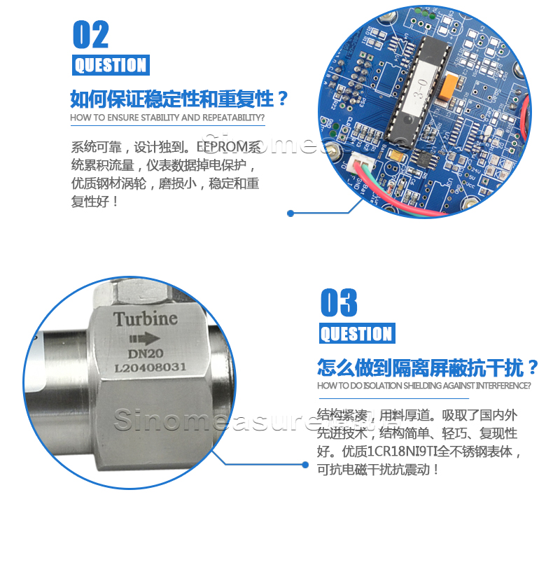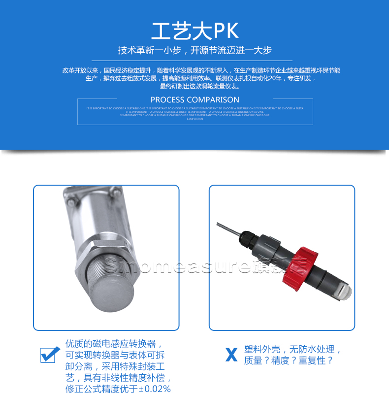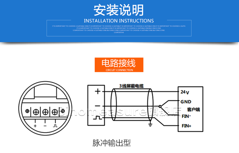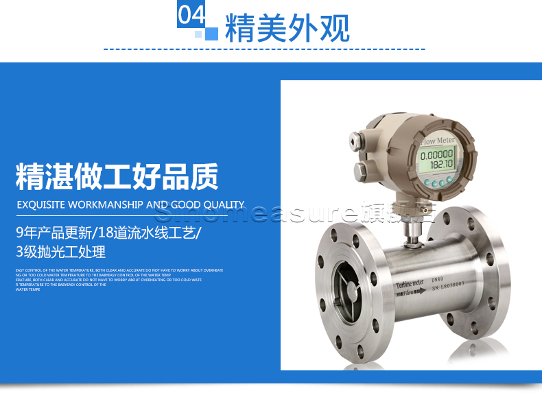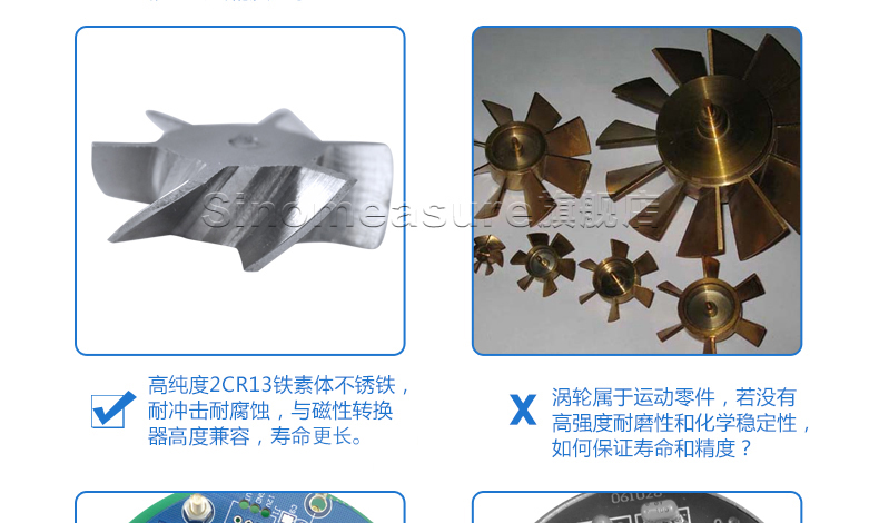 流體流經(jīng)傳感器殼體,由于葉輪的葉片與流向有一定的角度,流體的沖力使葉片具有轉(zhuǎn)動力矩,克服摩擦力矩和流體阻力之后葉片旋轉(zhuǎn),在力矩平衡后轉(zhuǎn)速穩(wěn)定,在一定的條件下,轉(zhuǎn)速與流速成正比,由于葉片有導(dǎo)磁性,它處于信號檢測器(由永久磁鋼和線圈組成)的磁場中,旋轉(zhuǎn)的葉片切割磁力線,周期性的改變著線圈的磁通量,從而使線圈兩端感應(yīng)出電脈沖信號,此信號經(jīng)過放大器的放大整形,形成有一定幅度的連續(xù)的矩形脈沖波,可遠(yuǎn)傳至顯示儀表,顯示出流體的瞬時流量或總量。