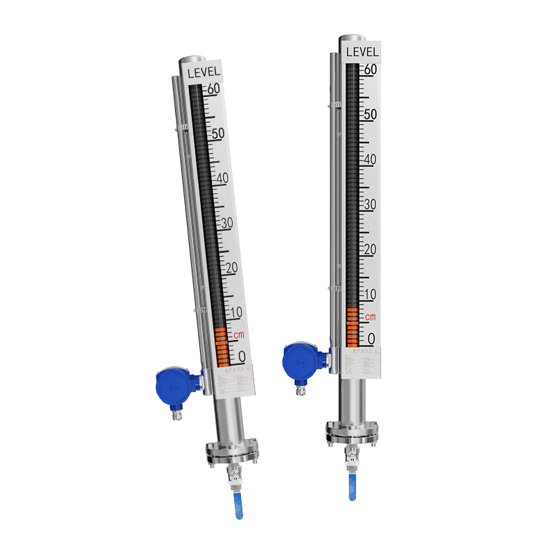 液位變送器由傳感器和電流轉換器兩部分組成,其傳感器部分安裝 在液位計指示器內(內置式)或不銹鋼保護管內(捆綁式),使其與磁 性液位計處于同一磁耦系統中,當液位上下波動變化時,其磁性浮子傳 感器內的干簧電阻矩陣中的干簧管,不斷地吸合或釋放,從而導致傳感 器矩陣的輸出電阻值發生變化,其變化的阻值與液位的變化值成對應的 線性關系,也就是液位的變化轉換成電阻的變化,并通過電流轉換模塊 將電阻變化轉換成 4~20mA 電流變化。