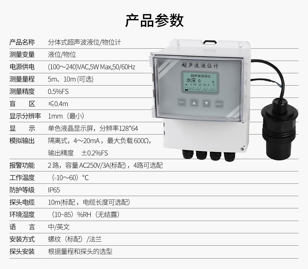 分體式超聲波液位計(jì)的原理是測量一個(gè)超聲波脈沖從發(fā)出到返回整個(gè)過程所需的時(shí)間。